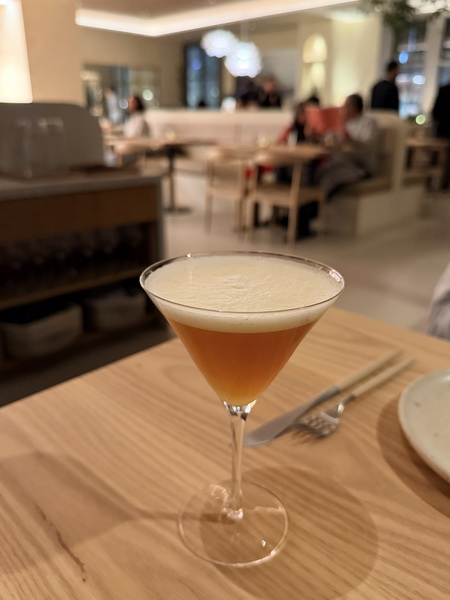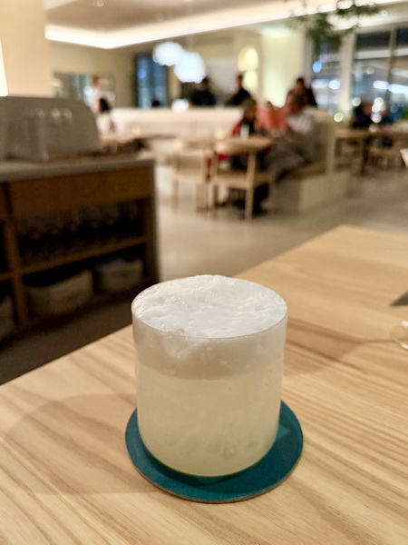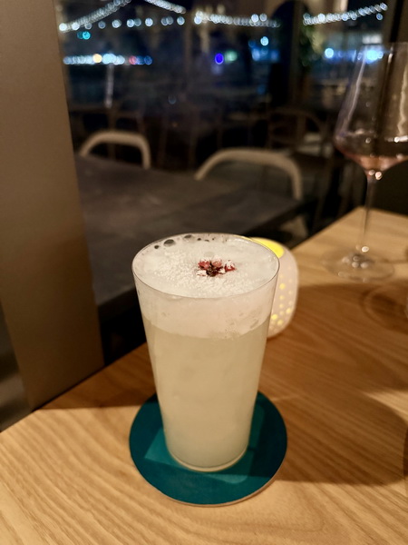 我點的是加入琴酒、柚子、柳橙花蛋白霜的調酒,綿密的口感有著柑橘的酸甜,相當開胃。