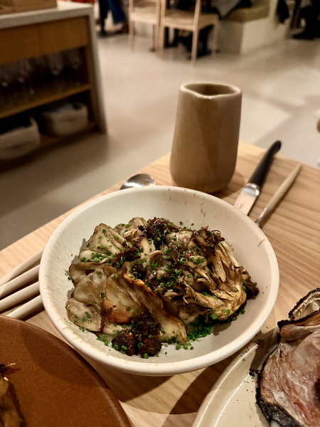 很推薦配菜點的舞菇,加入黑大蒜XO醬汁以及發酵野蒜,調味非常可口,鹹度適中很開胃。