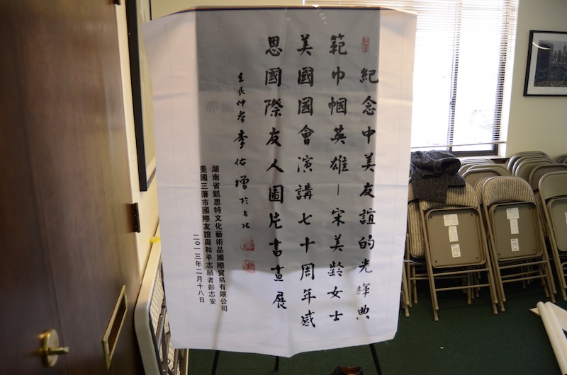 2013年2月18日,是中華民族最優秀的兒女宋美齡女士在美國國會演講七十週年紀念日。 1937年7月7日,“盧溝橋”事變後,中國抗日戰爭全面爆發已堅持五年多,到了相當艱難困苦之時,多麼地渴望國際社會和美國人民的支持。是中國人民永遠不能忘記的朋友。由湖南省凱思特文化藝術品國際貿易有限公司董事長彭志安特別在這特殊的日子在美國加州硅谷舉辦了巾幗英雄宋美齡女士美國國會演講七十週年感恩國際友人圖片書畫展這有意義的活動。