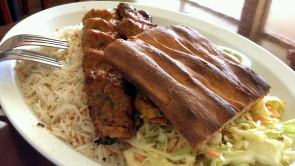 中東料理在灣區似乎非常熱門,多少與移民文化也有關聯,在南灣最有名的就是Dish Dash,這家分類屬於中東偏地中海料理,評價人數多達1822人(as of April 5, 2013),星等4.5顆。非常驚人的成績。說回來這家位在Abbott Ave的Tayyibaat,則是中東偏阿富汗料理,而最出名的菜是烤羊肉串,lamb tikka kabob。不敢吃羊肉的朋友就選濃濃地中海風的Rotisserie Chicken吧,Rotisserie來自15世紀的巴黎,原本指的是烤肉的方法,以水平旋轉的方式串烤著一整隻雞或是豬羊等。後來流傳到希臘,土耳其,中東甚至是墨西哥後,發展成垂直烘烤的方式,部份kebab,希臘的gyro,中東與阿拉伯的沙威瑪(Shawarma)都是這樣。(你去過這家嗎?我們沒有找到相關華文部落客寫這個,如果有的話,歡迎提供連結喲!)