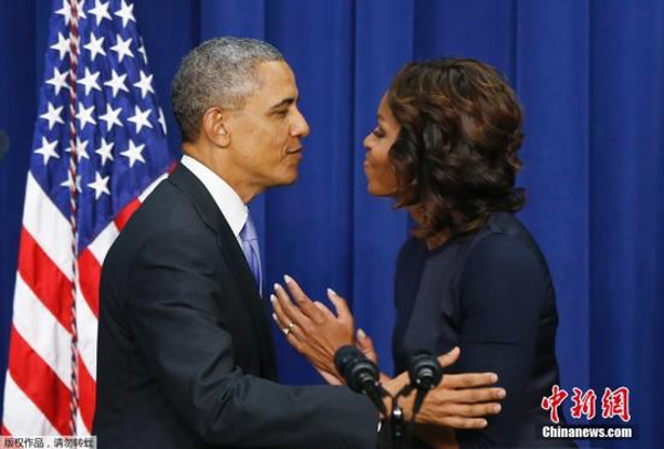 奧巴馬總統與夫人米歇爾16日在一次公開場合上當眾親吻,