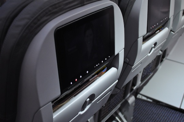 The main cabin is outfitted with 36 Main Cabin Extra seats, which feature an extra 6 inches of leg room, and 36 standard Main Cabin seats in rows of 3 by 3. All seats are equipped with universal AC power outlets and USB jacks. Main Cabin Extra flyers also receive early boarding privileges. All Main Cabin Extra and Main Cabin customers will be able to enjoy full complimentary in-seat entertainment through March 31, 2014. After the complimentary period, guests will have the options of complimentary content, pay-to-access packages, or pay-per-view movies. All purchases made inflight can be paid for with credit card, as no cash is accepted.