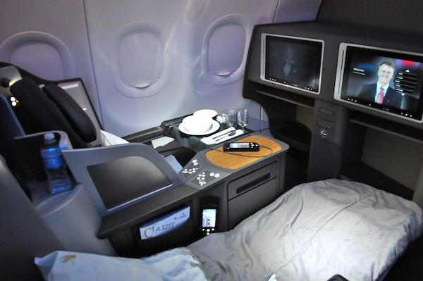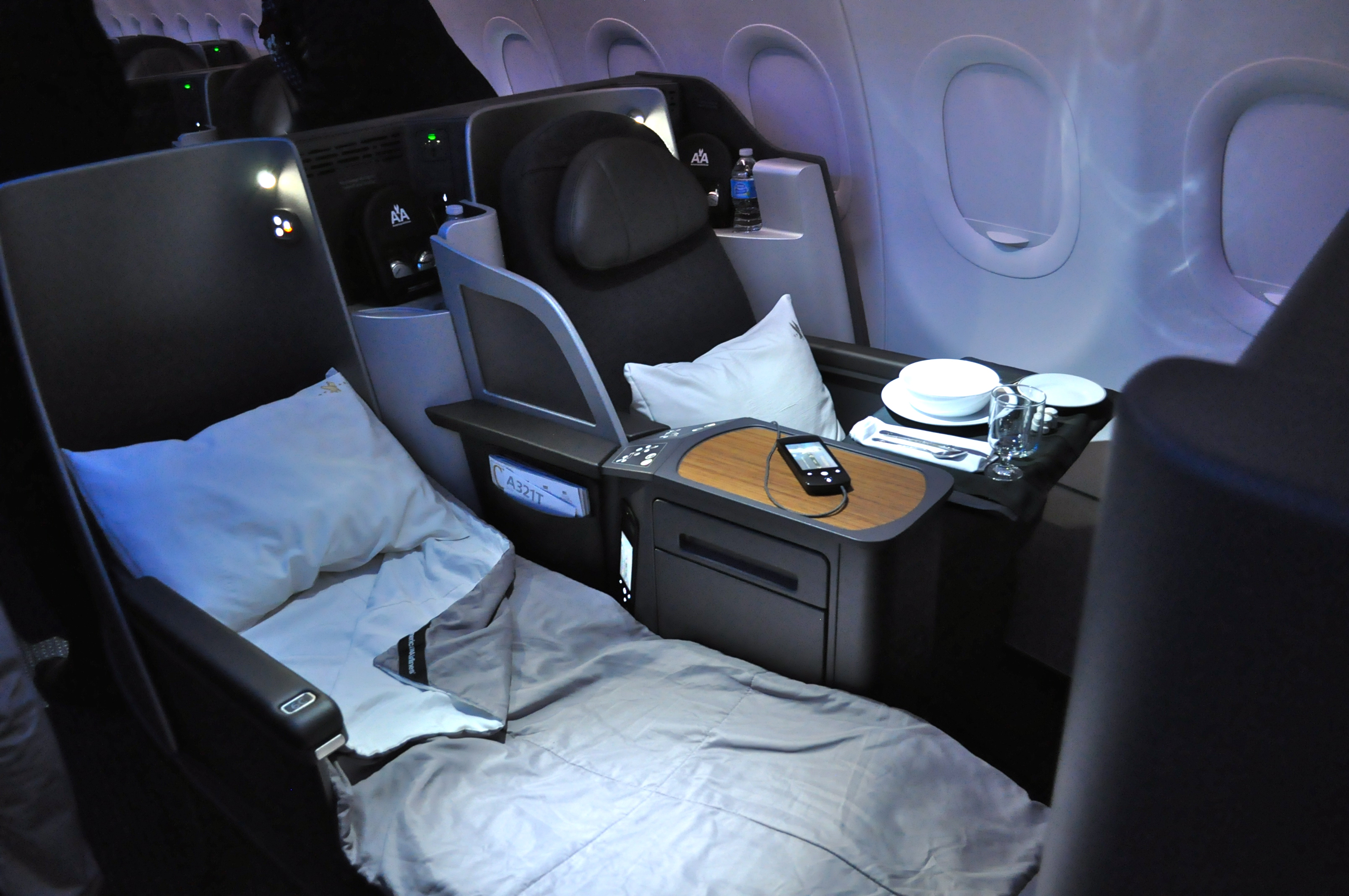 First Class Cabin: 美航A321T一等艙有十個可以平放的座位,空間寬敞,
