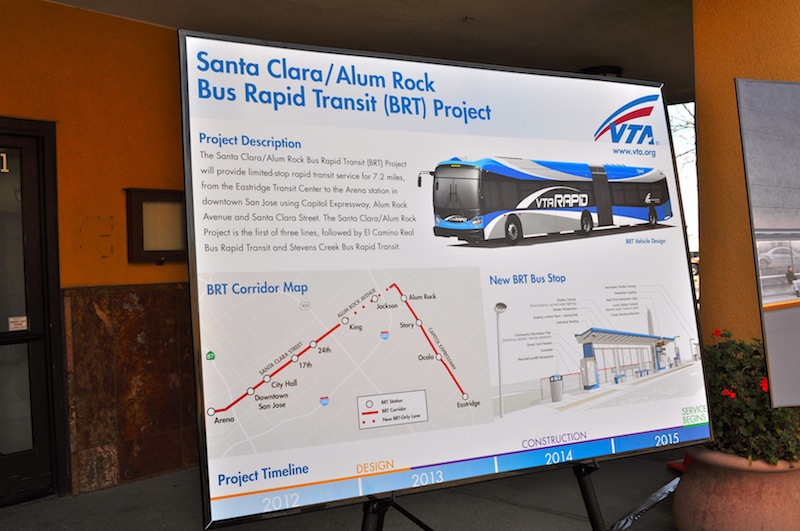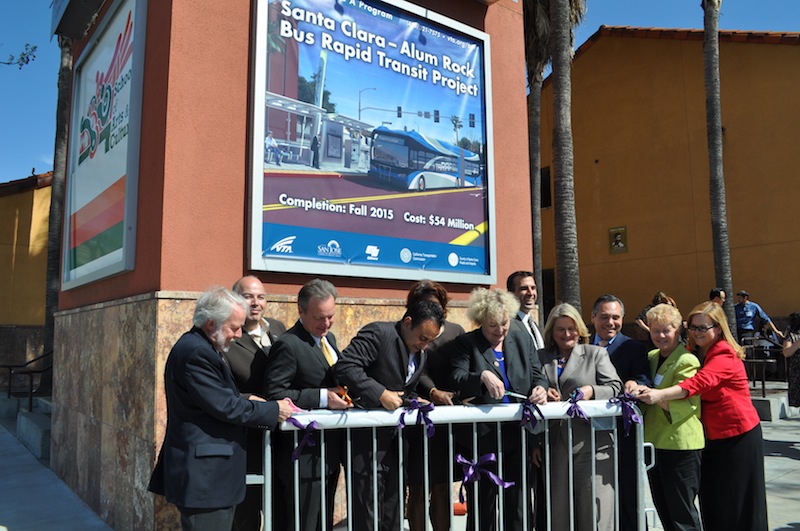 週五下午,Valley Transportation Authority和San Jose市議會成員彙聚Alum Rock的Mexican Heritage Plaza,宣佈啟動新的Bus Rapid Transit(巴士捷運)專案。該專案從Eastridge Transit Center到San Jose市區的Arena車站,全長7.2英里,提供停站有限的快速公交服務。巴士線路將穿過Capitol Expressway、Alum Rock Avenue和Santa Clara Street。這條Santa Clara-Alum Rock線路是包括El Camino Real BRT 和Stevens Creek BRT在內三條線路中的第一條。
