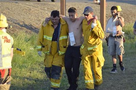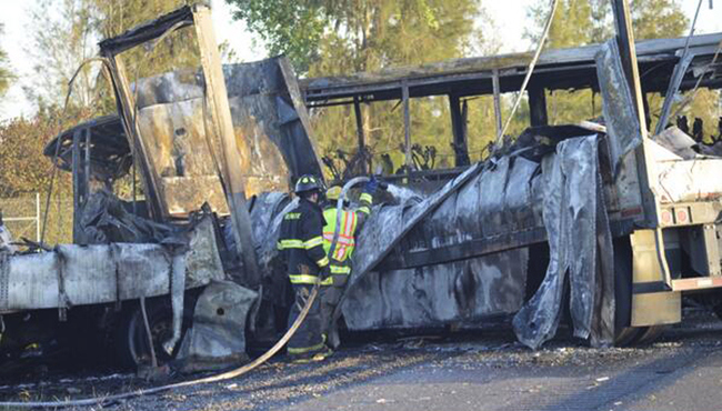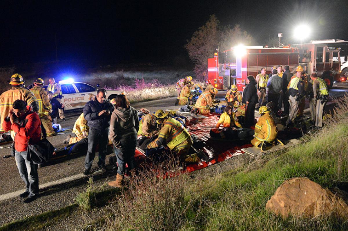 一位CHP調度員說巴士和卡車相向而行,卡車越過一個草皮隔離帶,撞上巴士,引起爆炸和起火。
