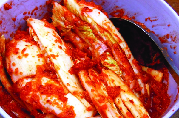 3)醃漬——遙想古代朝鮮鄉下阿媽妮,生活困苦,醃一缸泡菜要吃上整年。醃菜的工作量大,為了方便,只好整棵地晾曬,整棵地醃漬(就像東北漬酸菜一樣)。於是此法代代傳揚。直到今日,你還可以看見教做辣白菜的視頻:帶著手套,費力地把粘糊糊的辣椒醬塗到一片片相連的葉梗內。格格想不通:今人為何還要沿用舊法?把白菜切段,倒入辣醬用勺攪拌,不是更簡便嗎?而且日後取食也方便。