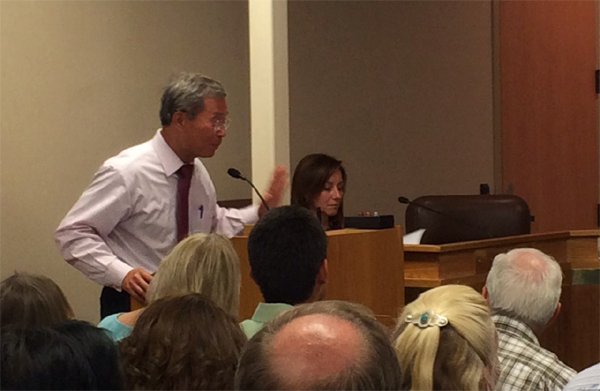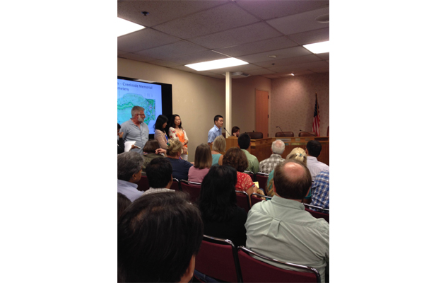 San Ramon市長Bill Clarkson和副市長Phil O’lone首先致辭。並說明該墓地的最終決定權在Contra Costa County, 而不在San Ramon City。今天市政廳只是來傾聽當地居民的心聲,希望大家踴躍發言。市政廳一位工作人員介紹完該墓地的規劃及可能引起的水資源缺乏等問題後,便進入與會者發言和提問題階段。