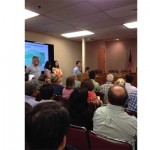 San Ramon市長Bill Clarkson和副市長Phil O’lone首先致辭。並說明該墓地的最終決定權在Contra Costa County, 而不在San Ramon City。今天市政廳只是來傾聽當地居民的心聲,希望大家踴躍發言。市政廳一位工作人員介紹完該墓地的規劃及可能引起的水資源缺乏等問題後,便進入與會者發言和提問題階段。