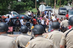 8月9日下午,手無寸鐵的邁克爾·布朗倒在一名警察的槍下,身上多處中彈。當地積累多年的種族矛盾頓時激化,連日來抗議狂潮不斷,其間也曾發生打砸搶事件。聖路易斯縣警方出動裝甲車,警察將手中的大型AR—15型狙擊步槍等重武器指向示威人群,並向示威人群發射催淚瓦斯和橡皮子彈。13日,警方還以妨礙公共安全為名將兩名記者拘捕。