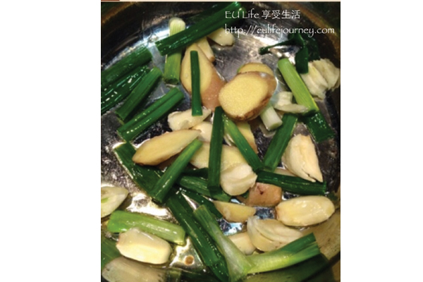 9. 準備一個大鍋子,放點油,加入蔥,薑先爆香