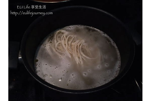 18. 麵條煮約三分鐘,如果是手拉麵的話可以再煮久一點至麵條Q軟