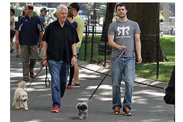 克林頓馬上當外公 與女婿公園遛狗聯絡感情