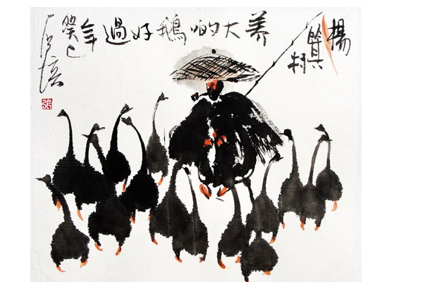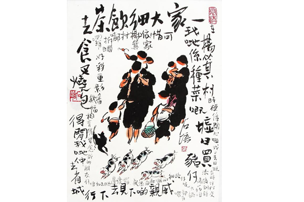 最近參觀了在老中地方新聞藝文中心舉辦的《張石培水墨畫展》。張石培先生是一個國際知名的藝術家,他的作品廣為人知始於1970年代,至今不衰,在日本、新加坡和香港都有為數眾多的擁躉。 站在裝裱樸素雅致的畫作之前,不少人細細觀賞,許久不能移步,有的離開了幾步又折回來,面上流露出會心的微笑。 張石培先生這次展示的作品以小品為主。他以濃重的筆墨抒發了濃重的鄉情,每一幅都有它的亮點。藝術品有沒有它的魅力,完全看它能不能打動人。張石培先生作品成功之處,在於它能令人發出會心的微笑,就像一把精良的二胡在一個大師的手上拉奏,它輕輕激蕩著你的心弦,讓它發出共鳴。 張石培先生這次展出的作品幾乎都離不開“楊箕村”這個嶺南的村莊。楊箕村實有其地(以前在廣州的近郊,現在已經是市區的一部分了,是畫家熟悉的地方),但是也不拘泥於其地,它是嶺南鄉土的典型。正如老舍先生的茶館,沈從文先生的湘西,魯迅先生的故鄉一樣,它是一個時代一方水土的濃縮。它有無數的故事,精彩紛呈,令人目不暇給。 張先生不但畫楊箕村簡陋的農舍,熱鬧的村頭水井,青磚斑駁的祠堂,紅花燦爛的木棉樹,以至魚塘、小艇、曬谷場,更畫在這些迷人景物中活躍的人:耙田的壯漢,牧鵝的老人,背著小孩做家務的農婦,抽水煙筒的老伯,帶著一家大細到城裡走親戚的夫婦,在瓜棚下閒聊的妯娌們,甚至在人們身邊活奔亂跳的狗,爭食的雞,憨厚的鵝,以至肥豬、水牛,等等等等。 比如在《一家大細飲茶去》這幅小品裡,父親肩上有個小傢伙在“騎膊馬”,母親抱著個小的在後面跟著,兩個比較大一點的孩子前後跑動,狗兒在身邊歡跳,還有五隻小豬崽在前面引路哩!看得人不禁從心裡發出微笑,對草根老百姓的生活產生由衷的熱愛。 一幅幅鮮明生動的風俗畫面在觀眾的眼前展開,講述著說不完的故事。這樣的人和物是有血有肉的,讓你看著覺得他就是你夢中的鄉鄰,你童年的玩伴或者長輩,你認識他們,叫得出他們的名字。 張石培先生的作品取材於楊箕村,但是它的意義絕不局限在楊箕村。正如老舍的《茶館》取材於舊時的北京,但讀者卻是全世界的人一樣。我相信所有的嶺南人,以至所有的中國老百姓,甚至西方人都會同樣感興趣的,因為人性是共同的東西。對和平、簡樸生活的熱愛和追求是共同的。 張石培先生的藝術是雅俗共賞的藝術。不同的人可以從不同的角度,在自己的觀賞活動中享受到你自己的那份滿足。 千百年來,嶺南人傑地靈,歷代畫家為數眾多,不少的畫家也愛畫嶺南的紅棉、荔枝等等,試圖從不同的側面來表現嶺南的風貌。但是這樣大量地集中地描繪嶺南草根百姓的風俗圖卷,達到這樣深度和廣度的畫家真的不多,張石培先生應當是其中最突出的一個。
