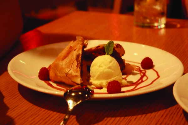 除了招牌的STRAITS菜色,一道主菜稱為Garlic Noodle,中文名稱為蒜片麵,也相當值得向您推薦,最費工的部份在於蠔油醬汁熬煮,裡頭有著薑、蕃茄、奶油以及胡椒等香料一同處理,將這醬汁與華人常吃的豆芽菜及油麵快炒,嚐來美味極了,配菜中的香菇不澀不硬,味香迷人,這道主菜也可做成素炒麵,仍然可口;出色的這道菜餚就在Burlingame漫延開來。