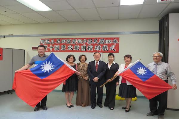 灣區僑社各界回國參加中華民國103年雙十國慶致敬團授旗儀式於9月14日下午在灣區僑教中心舉行,