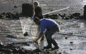週一,救援人員加快腳步拯救這幾天來所發現的300隻左右的海鳥,身上被一種據信是被倒進舊金山海灣的神祕粘稠物質覆蓋。