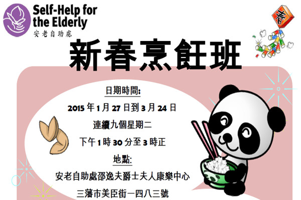 安老自助處邵逸夫爵士夫人康樂中心特別推出全新一期新春烹飪班。