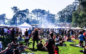 4月20日,San Francisco金門公園的嬉皮山吞雲吐霧。去年的活動,警方估計有15000人來參與。