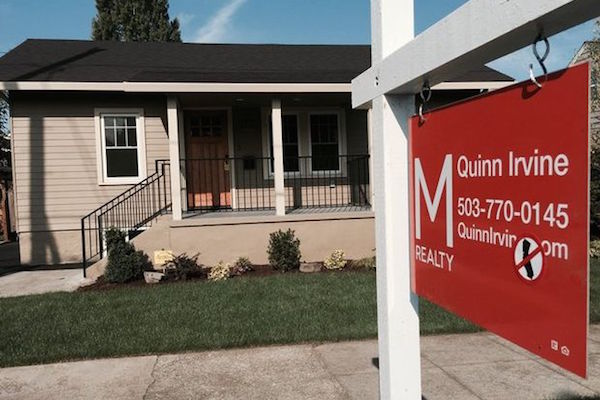 加州和俄勒岡之間緊張關係正在加劇,俄勒岡房屋出售的看板上出現有一條線穿過的黃金之州貼紙。