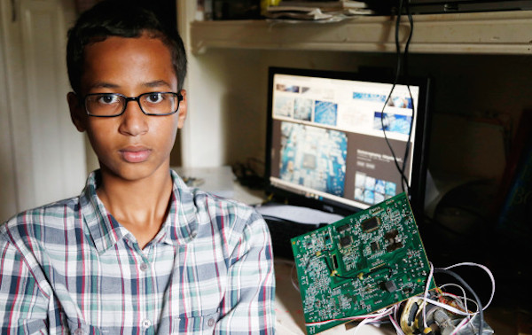 14歲的北德克薩斯學生Ahmed Mohamed自製了一个時鐘 – 看起来很像一個炸彈,他因此遭到質問和拘押。
