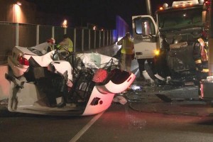 晚上11點20分在San Rafel,2000 Honda Civic司機在聯邦公路101號南向車道上北行時,在靠近Central San Rafael出口處撞到一輛挂著兩節空拖車的卡車。58歲的卡車司機沒有受傷,Honda司機當場即告死亡。