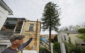 這棵Norfolk混種松樹矗立在一小塊私人物業的後院裡,年齡還有爭議,支持者說有一百多年了,但也有人說是1940年代種的。