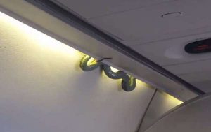 週日 (11/6),從墨西哥Torreon飛往墨西哥城 (Mexico City) 的墨西哥航空 (Aeromexico) 230航班,一條五呎長的蛇從頭頂行李艙游出來,然後沿著艙壁滑溜,最後掉在乘客座位上。