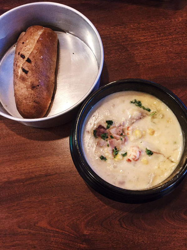大廚會將所有的食材,配上不同程度的醬料,漂漂亮亮的放在鐵碗中承上來。一碗海鮮當中也不忘了先放兩大塊玉米和兩根肥香腸,怕這碗牢飯會吃不飽。