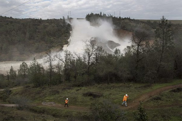 在發現洩洪道內有一大塊混凝土流失後, 加州相關單位與工程師從9日起即小心釋放歐羅維爾湖水壩內的水。 水壩距沙加緬度(Sacramento)北方約105公里, 且就位於人口超過1萬6260人的歐羅維里市上游東側。