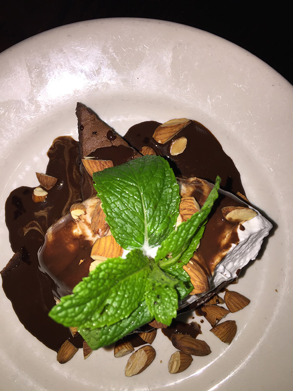 吃到此時餐廳已經客滿,可是我們肚飽心不飽,好不容易坐下的位子,不吃它個你死我活絕對不走。看一看甜點有些什麼好東西?侍者推薦 Tart Tatin, Creme Fraiche & Caramel,而我又是巧克力大王,於是又點了個巧克力蛋糕, Chocolate Cloud Cake。巧克力蛋糕不負眾望,上面澆著熱熱的巧克力,倒是侍者推薦的這一道甜點才是經典。有點像是Alamo ,就是熱熱的蘋果派上面加一球香草冰淇淋。但是這一道甜點比普通的蘋果派細膩許多,冰淇淋質感及味道也不同,原來冰淇淋也是由此店手工製作。