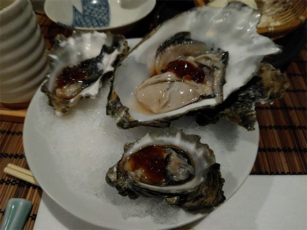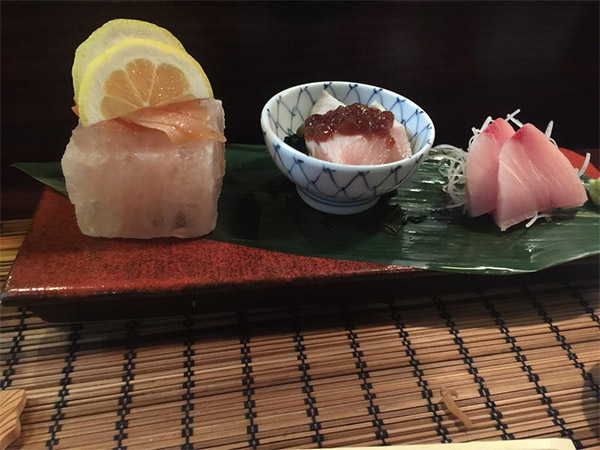 走進店裡,小到不能再小,只有幾張桌椅,但是卻沒想到那幾張位子全部都已經被人預訂一空,所以我們就只得坐在吧台。來這裡的一定都是十分「認真」的食客,此話怎講?菜單十分複雜,我們看了二十分鐘還看不出個所以然來。待者又交給我們一塊小黑板,上面寫的全是今天的特別菜,有幾道菜甚至是由日本空運來美,極為新鮮。我們研究了半天再加上待者的建議,於是選了下面的幾道菜: