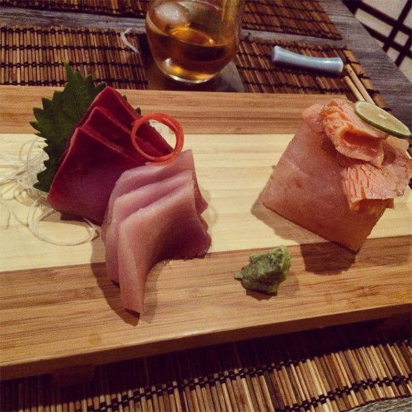 到了日本餐館怎麼可以不叫生魚片?我們選了三種,也是由廚師設計,生魚片新鮮當然不在話下,三位一體也是藝術擺設。當中最特別值得一提的是三文魚,又大又嫰,躺在一大塊塩石上,十分特別,讚!