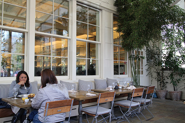 從納帕市區悠然穿越谷地,沿著古雅的聖海倫娜 ( St. Helena) 市中心街道行駛,小鎮素有「納帕山谷主街」 之稱,兩旁琳瑯滿目的特色商店、藝術畫廊和浪漫的咖啡館,突然之間,一抹葱蘢綠意讓人眼前一亮。門前藤蔓爬滿白色的外牆,一座熊熊火爐為這片小花園增添了不少暖意。通過小小的木門踏入這座小花園,映入眼簾的是有著玻璃屋頂的溫室空間。木製座椅上點綴了條紋的椅墊與抱枕,一旁是燒著木材的火爐;另外一邊是一整面擺放著盆栽的透明玻璃牆,陽光恣意地從各個角落灑進來,帶來輕鬆舒適的融融暖意。