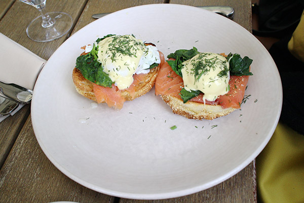 Norwegian Eggs 其實就是夾著煙燻鮭魚的班尼迪克蛋 (Egg Benedict),以現烤英式馬芬 (English Muffin) 為底,上面依序擺放了煙燻鮭魚、青菜、水波蛋(Poached Eggs) 以及荷蘭醬 (Hollandaise Sauce),最後再撒上乾燥的巴西利(Parsley),就是一道色香味俱全的班尼迪克蛋。煙燻鮭魚的質地細嫩,味道新鮮,水波蛋黃也夠溏心,荷蘭醬渾然天成,奶味濃郁卻不膩味,實為點睛之處。