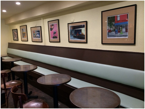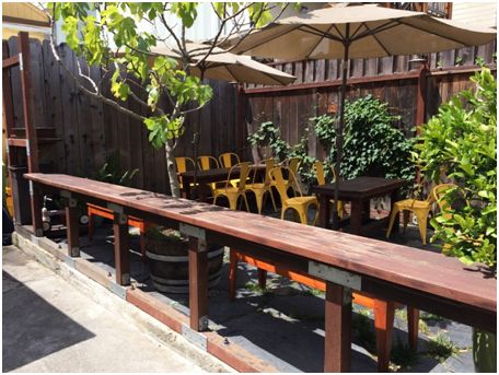 在寸土寸金的舊金山,進入donut小店,室內除了幾張桌椅外,還置放一些做donut的容器,擺得清爽又乾淨。此外居然有個後院小花園。院子雖小但有花、有傘、有桌椅…小巧又優雅,可以輕鬆的在此喝咖啡、吃donut,享受一下鬧中取靜的清閒。