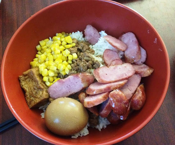 渡小月有各式炒米粉,肉絲、牛肉、腰肝、十錦等選擇性很多,湯麵亦然。除了麵與米粉,亦有粿條,各色口味任君選擇。在這裡不但可以享受到古早的台灣味,亦能吃到台南擔仔麵,及各色麵線,還有溶入其他地方口味的粉麵粿條等。如果我們還有胃口,也會叫上一碗台灣香腸飯。或許是懷鄉情結,我總覺台灣口味的香腸特別好吃,白飯上除了香腸,還澆上滷肉配以甜玉米,滷蛋,滷豆腐。不知怎麼,我年紀越大越愛吃飯,尤其是配上愛吃的香腸與滷肉,一口香腸一口飯真是人間美味。