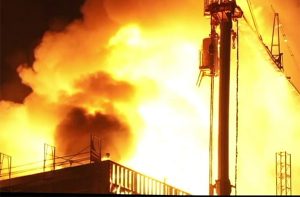 「噴發出巨大的火焰,」從一列通勤列車上觀察這場大火的Mark Ciana說。「看到這種程度的大火真讓人心驚膽戰。」