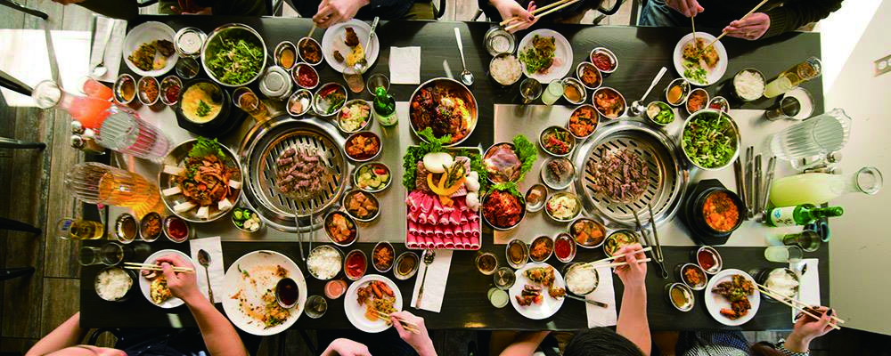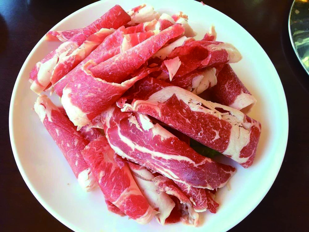 韓式燒烤桌中間有個圓形的烤坑,牛肉類包括醃牛肉,牛小排,牛舌,牛胸肉…