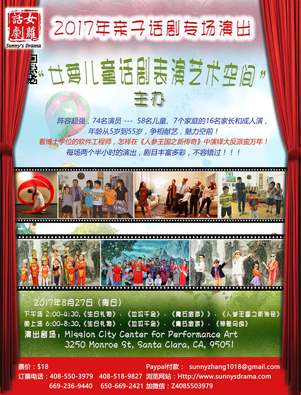 今年,《女蘿兒童話劇表演藝術空間》持續發展壯大,在灣區首次推出的“親子話劇年”倡導,為所有文藝範兒的家長和孩子提供一個同台飆戲,展現風采的機會,孩子的童年,轉瞬即逝,明智家長,紛紛響應,“親子話劇年”展現出活力四射的強勁勢頭。