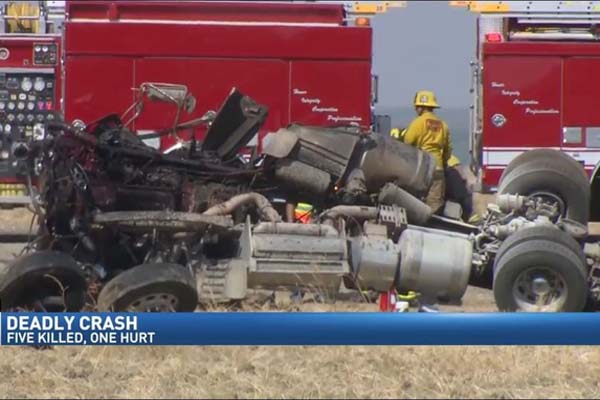 當局說,Fresno發生一起重大交通事故。一輛SUV與一輛拖車相撞並起火,SUV五人不幸喪生。