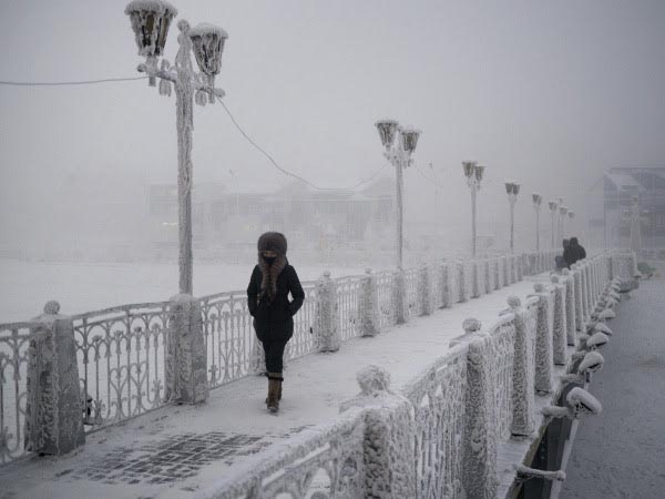 俄羅斯東北部城鎮奧伊米亞康 (Oymyakon) 是世上最寒冷的人類永久居住地,當地一月平均氣溫為攝氏零下 50 度,歷史上更曾跌至零下 71 度。居民要整天開著汽車引擎,以免引擎「凍僵」。