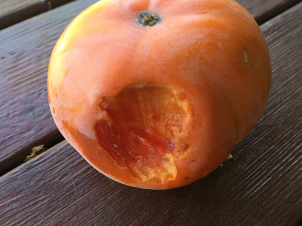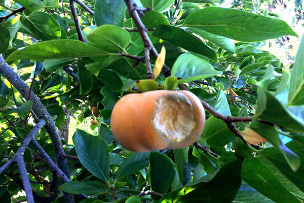 天天發現掛在樹枝上的柿子每粒都被咬,專挑它喜歡的咬一口,又另挑別的再啃,從沒見過它吃完整個柿子,真氣得令人跺腳。此情此景才覺得這些松鼠不再可愛,甚至有些討厭。