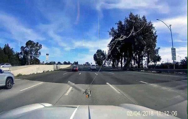 一位北加州女子感謝上天眷顧讓自己完好如初。週日,她駕車在公路上行駛時,有人向她的車投擲了一個危險物品。