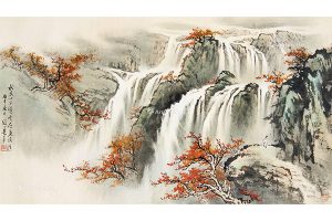 在題材上帶有臺灣鄉土風情的山水作品最豐富。其中蘇峰男、羅振賢、蔡友、林錦濤、吳恭瑞、吳清文、盧青辰、張進勇、何堯智、陳柔岑、謝涵以水墨淡彩,寫出淘天海浪,或清淨山水,或蒼翠花草林木,揭開自然純樸之美。也有范墨寫村民在高原相會之景,以示山村古樸生活之美。在鄉情作品中也有李宗仁,用印象派的光色寫臺灣的另一面,有紫雲貫天、大海波濤,氣勢宏闊壯觀。這以實景抒情的作品中,還有涂璨琳的一幅以狗為主題的畫,圖中有三隻棕色狗和一隻白色狗在楓樹下玩,背景有濛瀧氣氳。古代中國畫家很少畫狗,現代有很多人畫狗,但是畫得如此生動的不多。