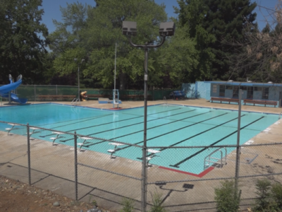 自一場災難性野火基本摧毀北加州Paradise鎮後,這個鎮的公共游泳池首次重新開放。