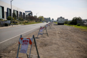 週四在Fremont,隨著警方在880號州際公路旁強制劃定禁止停車區,數輛露營在Tesla工廠附近道路路肩上的房車主動駛離,另有一輛被拖走。