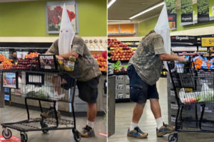 密閉空間戴口罩本是立意良善的防疫措施,如今卻被有心人利用成表達意識形態的公開場合。南加一超市內有人戴自製3K黨頭巾購物的照片,於勞動節這週末瘋傳社群媒體,大多是罵聲一片。
