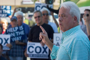 Cox在2018年對Newsom的競選中贏得38%選票。他強調加州生活成本高昂,並指責Sacramento占主導地位的民主黨未能控制住這些成本。