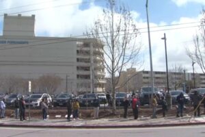 在Redwood City的Kaiser Permanente,數百名已預約的人前來接種。人們繞著停車場排起長隊,一直排到街上。人們在寒冷中等待。