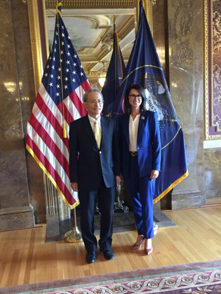 賴處長另強調,臺灣與猶他州友誼深厚,經貿關係非常密切。臺灣是猶他州在亞洲第3大及全球第5大貿易夥伴,盼猶他州各級政要、議會領袖經常率團訪臺交流及推廣商務;此外,臺灣與猶他州在華語文及高等教育等方面亦有互補之處,未來也應擴大教育交流。而為深化彼此經貿與教育的交流,推動簽署雙方駕照互惠協議也有助彼此交流的便利性。